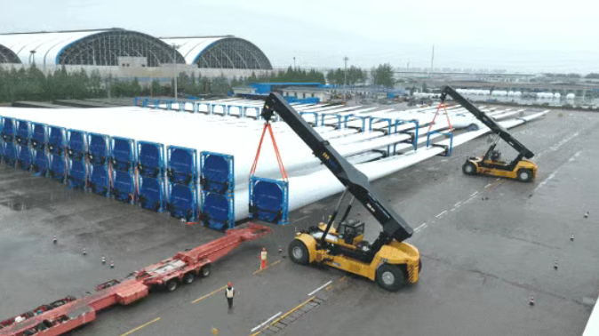 徐工XCS100S風電專用正面吊如“破壁者”應時而生,以三大“殺手锏”橫掃痛點:百噸巨力穩(wěn)擎龐然大物,毫米級定位精度、多場景穩(wěn)定輸出無懼港口風浪。