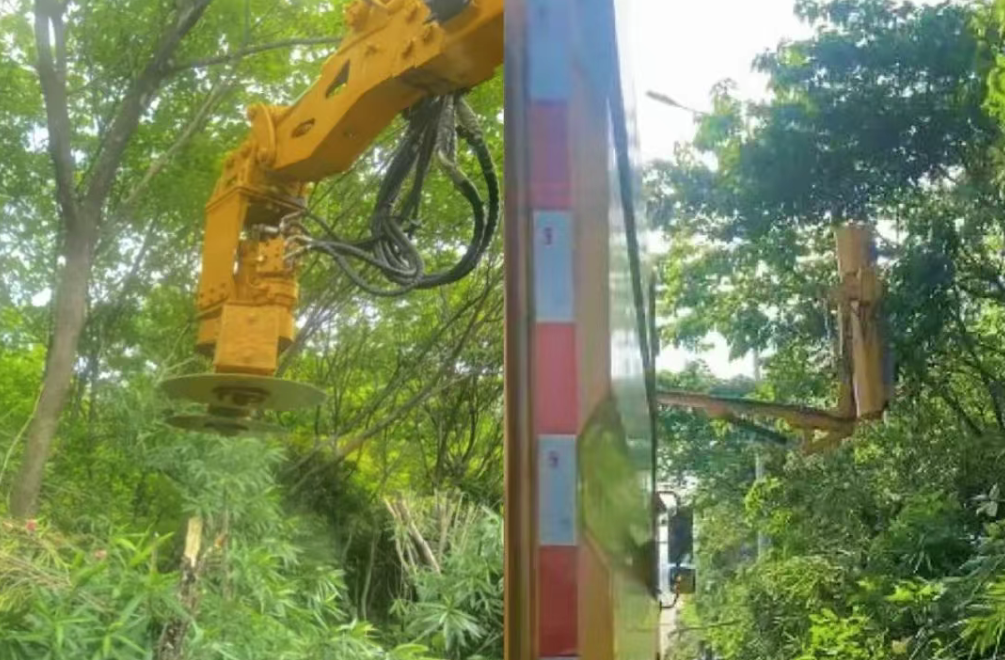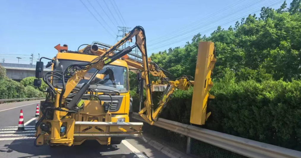 雙臂協(xié)同立體化施工:上海中分帶采用“平剪+立剪”同步作業(yè),效率提升數(shù)十倍;杭州邊坡通過前后臂分工(側(cè)枝處理+高枝修剪),快速完成50米邊坡修剪。